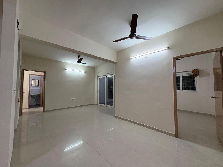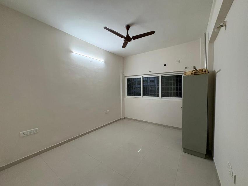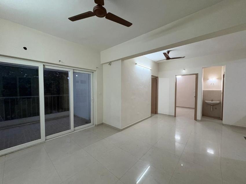 The apartment features a spacious living and dining area, along with three well-sized bedrooms. Two bathrooms are attached to the bedrooms for added comfort and privacy. The living room opens into a large balcony, which seamlessly extends to one of the bedrooms balcony —ideal for outdoor seating or a cosy relaxation corner. The second bedroom includes a compact private balcony, perfect for ventilation and natural light.